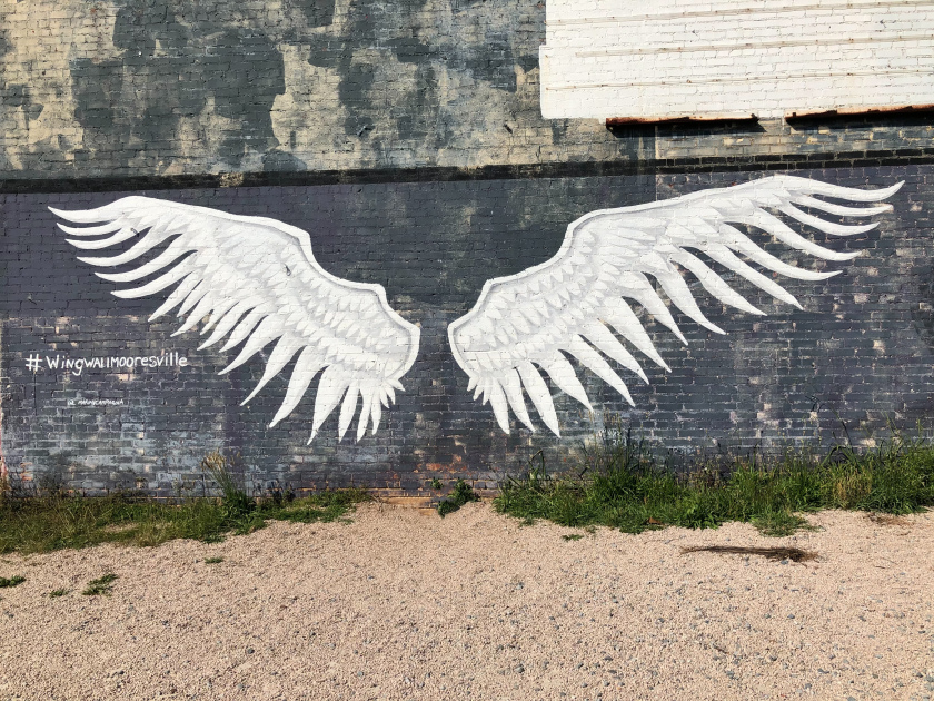 Sarah gave the only prepared speech of the evening. Equally impressive was her ability to switch from a 5-7 minute to a 10-15 minute speech when she learned there was only one speaker. She shared various pictures of “Murals of Mooresville” and the local history behind them. Here is a highlight. It was inspired by lines from an Erin Hanson poem, “‘What if I fall?’ ‘Oh but my darling what if you fly?’”